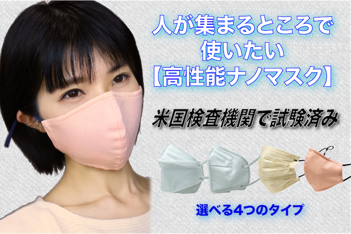 今年1月にご紹介させていただいた高性能ナノ・マスクをクラウドファンディングにて、もうすぐ先行予約販売を実施いたします。米国検査機関で抗ウイルスの試験をした高性能ナノフィルターを採用しています。人の集まるところでは、やはりマスクをしたいから、もっと安心できるマスクをお届けしたいと考えています。