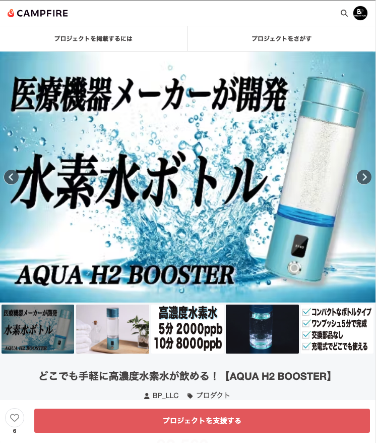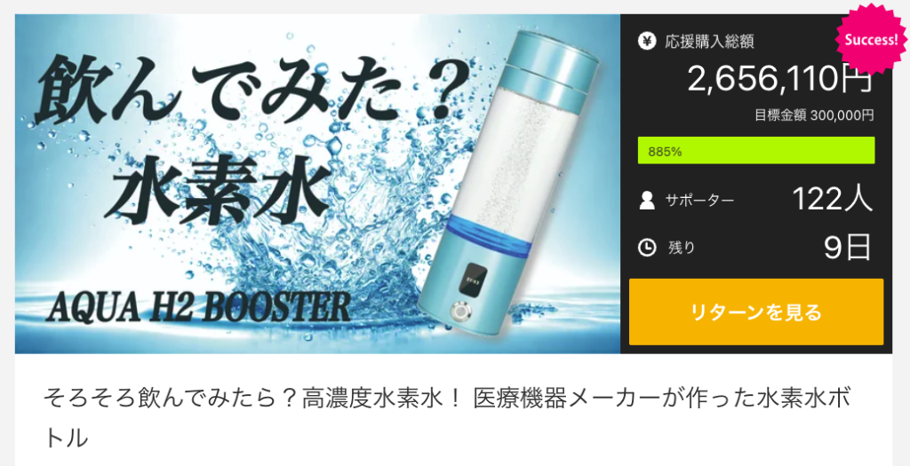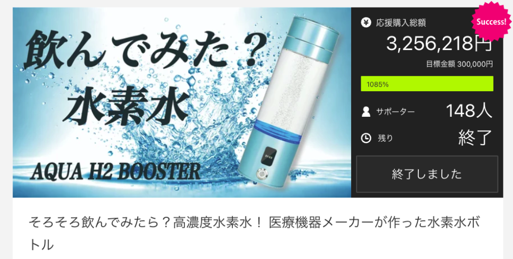 お知らせしていた高濃度ポータブル水素水生成ボトルのMakuakeでのキャンペーンが開始しました!